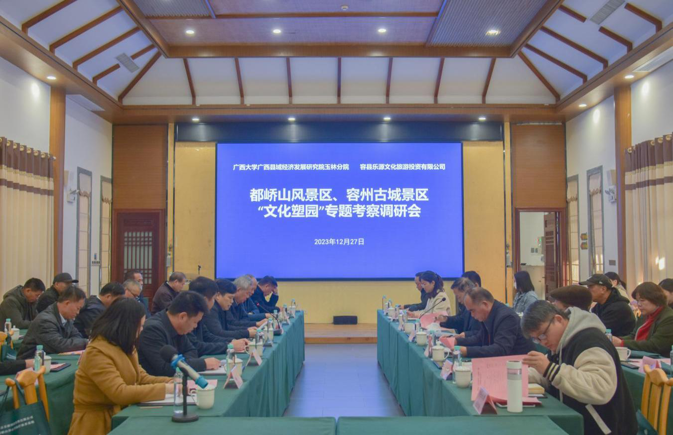 陈翔指出,为深入贯彻习近平总书记关于文化和旅游工作的重要论述,全面落实2023年广西文化旅游发展大会精神、玉林市委书记王琛在容县调研时的讲话精神及玉林市关于实施文化塑城工程的部署要求,进一步挖掘优秀传统文化,加快推进文化强市建设,以文化赋能玉林经济社会高质量发展,容县乐源公司率先开展文化挖掘等系列工作,组织实施都峤山风景区、容州古城景区“文化塑园”工程,推动文化旅游融合发展,激发消费潜力,大力打造文化旅游地标。