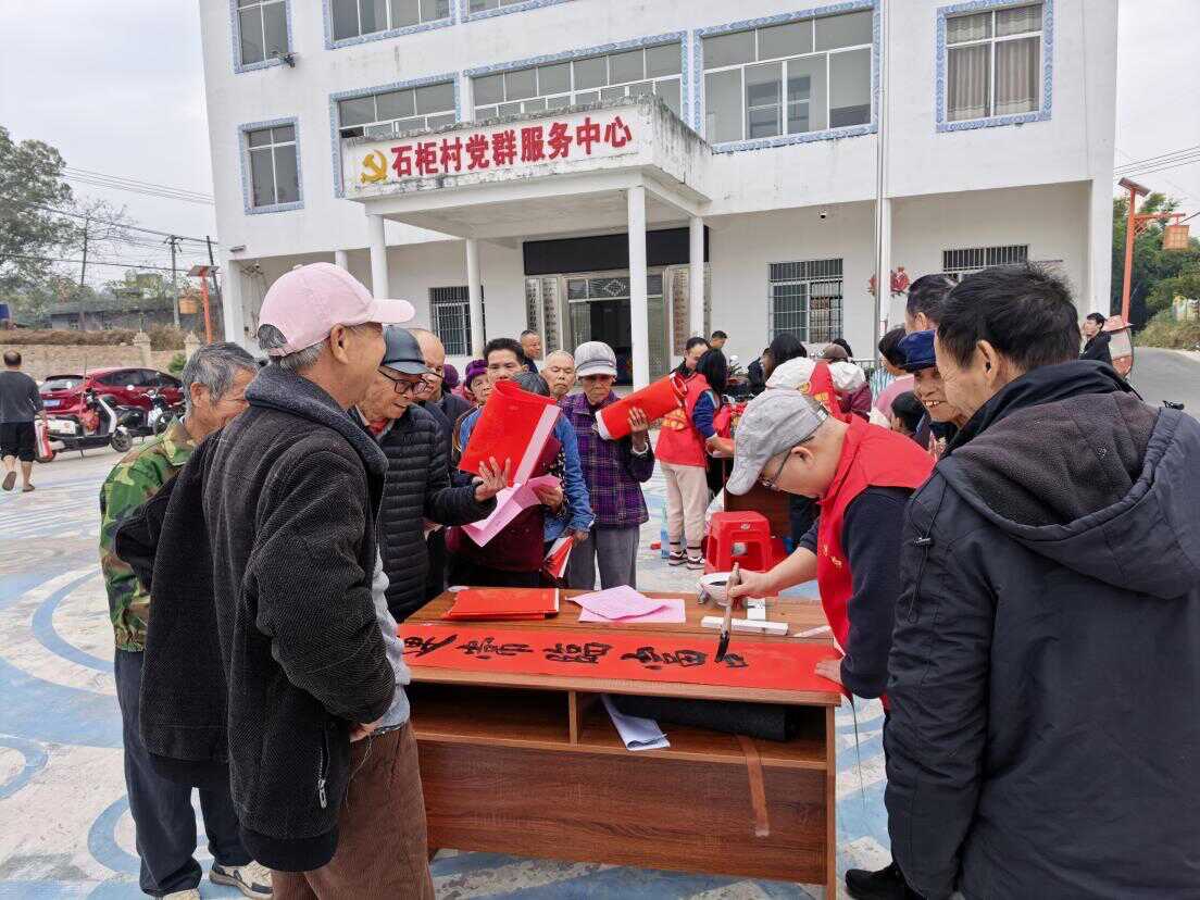 义写春联,书法家们挥毫泼墨,一幅幅寓意吉祥的春联和“福”字传递出浓浓年味,深受村民喜爱。