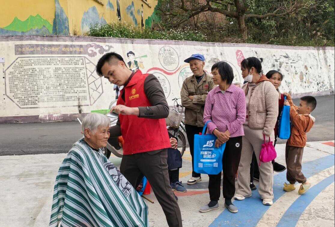 爱心义剪,专业理发师耐心细致地为村民免费理发,让群众焕发新颜迎新春。