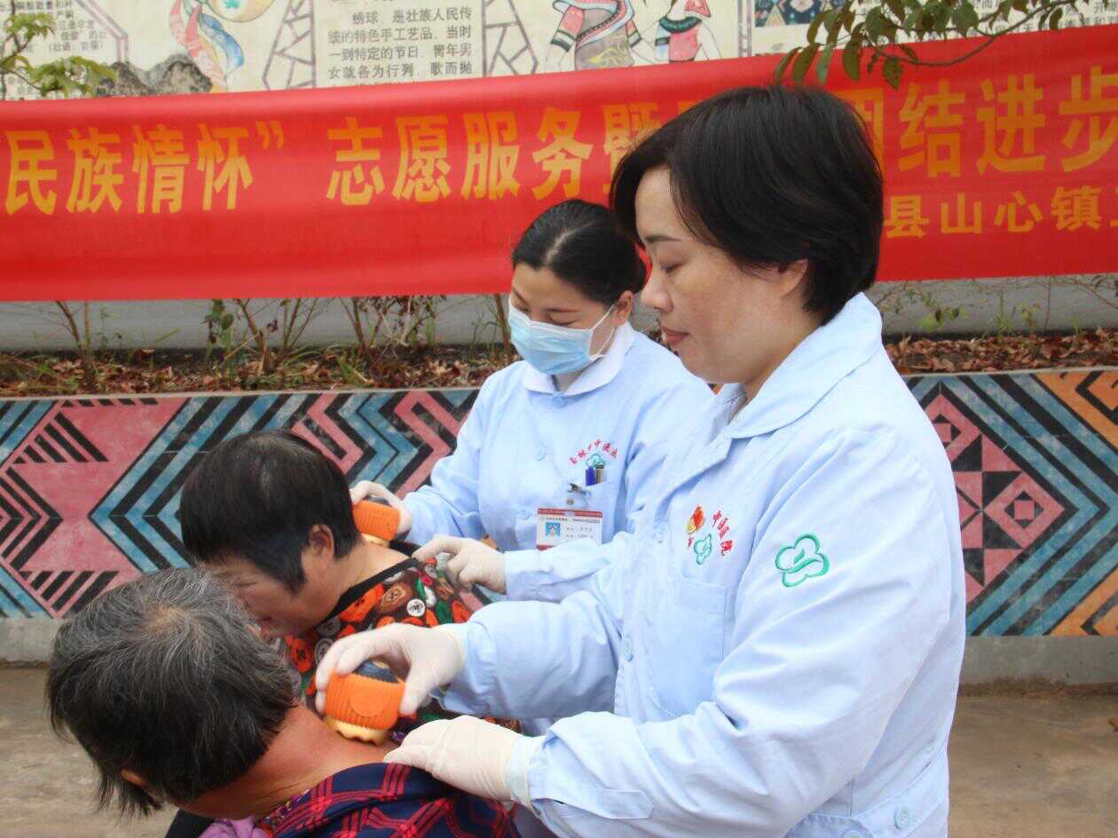 近日,玉林市国资委党委、玉林产投集团党委、玉林市中医医院党委、北市镇人民政府、兴业县山心卫生院党支部联合到兴业县山心镇石柜村、兴业县北市镇院垌村开展春节志愿服务惠民活动,本次活动将传统文化、健康服务、政策宣传与民族团结相结合,为当地村民送去新春的问候与关怀。
